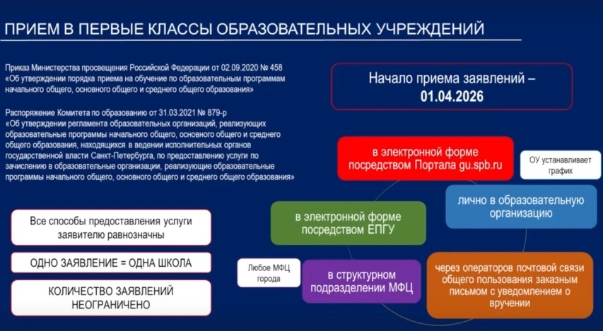 Порядок приема на обучение в первые классы образовательных учреждений Санкт-Петербурга